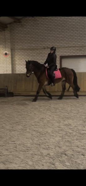 d pony te koop 12 jaar. Een welsh cob. 1.47m .een ruin. NIet geschikt voor jonge onervaren ruiter/amazone. Die gaat hij uitproberen. Maar ben je wat ervaren is er niets aan de hand. Laatste jaar niet veel gereden. Maar het is opstappen en rijden, ook buiten. Hij is makkelijk te laden op de trailer. Houd ook van een sprongetje. Braaf bij de hoefsmid. In het verleden beslagen, maar nu al lang niet meer. In het verleden ook voor de kar gereden.