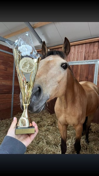 Te koop wordt aanbevolen een D-pony met een schofthoogte van 148 cm.