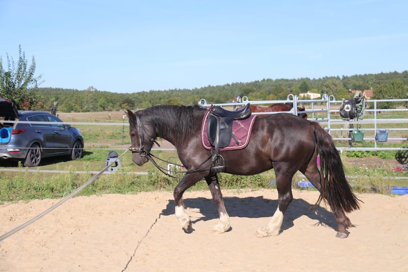 Zargon ist ein dreijähriger Welsh Cob Wallach von Stubbenhof Zorro aus einer bewegungsstarken sportlichen Welsh Cob Stute Solloway Lady Lara. Prämiert als Fohlen hat sich dieser schöne Rappe gut entwickelt und besticht durch seine überragenden drei Grundgangangarten. Er ist menschenbezogen und leistungsbereit. Er wurde im Sommer anlongiert und an Reitergewicht gewöhnt. Er zeigt sich auch hier unkompliziert. Leider hat er sich in der Aufzucht auf der Hengstkoppel am Hinterbein verletzt. Die Schwellung hat ihn niemals behindert und hat keinen Einfluß auf seine Bewegungen. Das Bein wurde ohne Sehnenbefund tierärztlich behandelt. Aufgrund der immer noch vorhandenen Umfangvermehrung wird Zargon unter Wert abgegeben. Wenn Sie einen Freund fürs Leben suchen, ist vielleicht Zargon Ihre Chance. Bei Fragen oder Interesse stehe ich Ihnen gerne zur Verfügung.