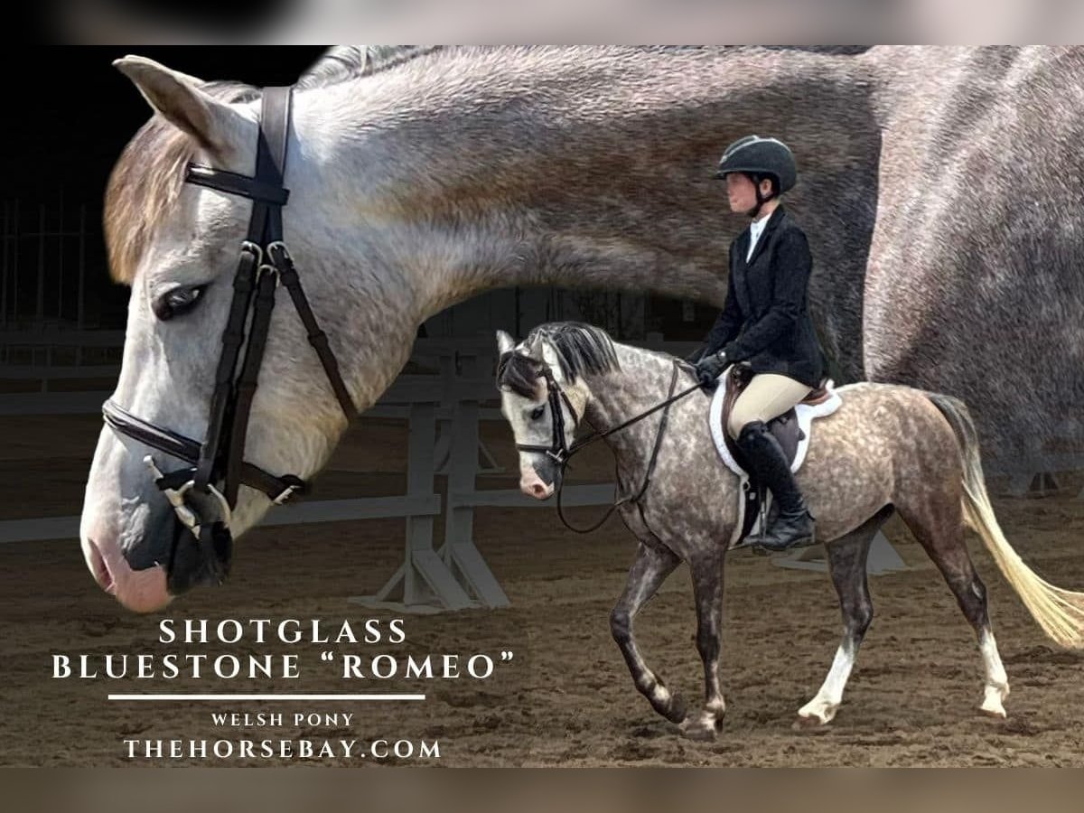 ★★ SHOTGLASS BLUESTONE ★★ “Romeo” | 2021 Registered Welsh Pony Gelding | 12.2 Hands | Fancy • Fun • Kid-Approved Romeo is the definition of a dream pony. This 2021 registered Welsh gelding stands 12.2 hands tall and is as adorable as they come, with a perfect button nose, beautiful face, striking eye, and correct conformation to match. He’s the kind of pony that captures hearts the moment he walks out of the stall. Romeo is first to meet you at the gate and absolutely loves attention. With his goofy personality and sweet nature, he quickly becomes a favorite wherever he goes. He bonds easily with his people and has the kind of temperament that makes him a joy to have in the barn. Under saddle, Romeo is well-started and confidently progressing. He completed 90 days of jump training last summer and has been ridden and shown by lesson riders. He has a solid walk, trot, canter, and stop, a natural lead change, and transitions easily — cantering off a kiss and stopping off voice cues. He’s responsive, balanced, and incredibly fun to ride. He is reliable enough that my 2-year-old daughter, with very little riding experience, can ride him around on her own. Romeo has been shown at Estes Park and Copper Penny, hauling in, stepping off the trailer, and riding exactly the same as he does at home. His consistency and level-headed nature make him stand out in new environments. He also absolutely loves the trail. Romeo has been ridden extensively outside, confidently navigating dogs, bikes, running teams, strollers, traffic, and even busy downtown settings at night with music and crowds. He crosses water, bridges, and tunnels and will ride along the road without hesitation. Beyond riding, Romeo has a strong groundwork foundation and has been introduced to liberty work. He’s learning tricks like the step-up, bow, and lay down, and enjoys engaging with his handler. He’s also been ridden bareback and with a neck rope, has a finished neck rein, and moves nicely off leg cues. Romeo combines talent, brains, heart, and personality into one compact, eye-catching package. He has a wonderful foundation, a big try, and the kind of disposition that makes him truly special.