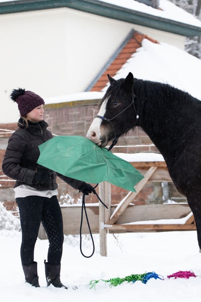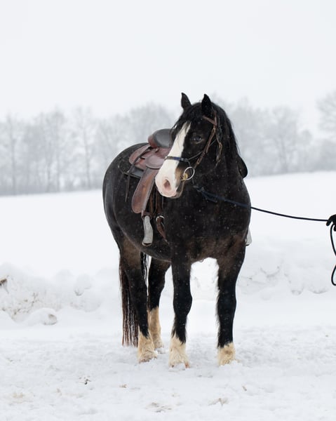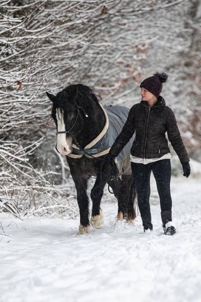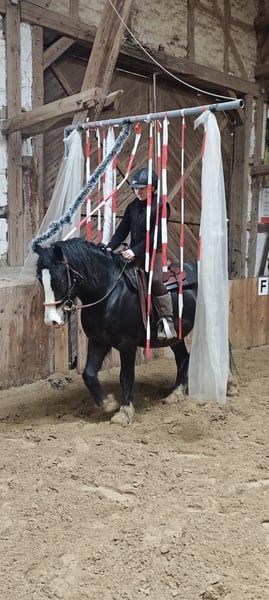 Finley DL *31-03-2021, 1,48 m hoog Fokproduct van de staatsprijshengst MBS Royal Flash, uit een moeder van H-S Hot Playboy Finley kreeg in de herfst van 2024 zijn positieve keuring, maar werd in het voorjaar van 2025 gecastreerd om later als rijpaard verkocht te worden. De ruin benadert nieuwe dingen met veel nieuwsgierigheid en lef, voltooit zonder problemen een rustparcours met allerlei spannende elementen en is uiterst mensgericht en knuffelbaar. Hij kent grondwerk, handwerk, longeerwerk, rijden vanaf de grond, dubbele longe, cavaletti- en stangenwerk aan de longe, wandelen, handpaard, vrijspringen en vrij rijden in stap en draf. Hij doet al deze dingen met motivatie en een fijne communicatie. De huidige eigenaren kochten Finley afgelopen zomer rechtstreeks van de fokker voor hun 12-jarige dochter vanwege zijn geweldige karakter. Helaas werd er in dit geval slecht geadviseerd, omdat een onbeleerd paard en een kind op RWB-niveau niet de beste combinatie vormen. Door de daaropvolgende training met veel stress en druk raakte Finley zodanig overbelast dat hij niemand meer opliet en paniek had voor zwepen en berijdershanden, evenals voor aanrakingen aan de achterhand. Dit maakte de situatie voor de familie nog moeilijker. Sinds herfst staat Finley bij ons voor een ‘nieuwe start’. We hebben hem heel voorzichtig en stapsgewijs opnieuw opgeleid, zijn angst voor ruiter, zwepen en aanrakingen weggenomen en nu is hij een paard dat door zijn vriendelijke aard en positieve werkhouding dagelijks blijft leren. Hij kan zonder grondpersoon opstappen, wacht geduldig tot je je hebt gesorteerd en loopt netjes in stap en draf. Ook longeerwerk met lange teugel en dubbele longe hebben we aangeleerd. Hij toont zich daarbij heel makkelijk en in de juiste handen zou hij zeker geschikt zijn als rij- en aanspanningspaard, bijvoorbeeld voor dressuur, springen, working equitation of trail. Finley kent zowel Engels- als westernuitrusting, omdat wij in beide disciplines opleiden en onze jonge paarden vanaf het begin verschillende uitrustingsstukken leren kennen. In de kudde is Finley eerder dominant, maar hij onderwerpt zich ook goed. Hij heeft hier gestaan met verschillende ruin en direct naast merries, maar nog niet in een gemengde kudde. Hij is momenteel hoefbevangen, braaf bij de hoefsmid, stapt netjes in de trailer en is verder heel makkelijk in alles. Op ons advies zoeken we nu een passend thuis voor Finley bij mensen met ervaring in jonge paarden, en voor de dochter een ervaren leerschaap. Finley wordt uitsluitend verkocht aan passende mensen en een diervriendelijke huisvesting. Hier staat absoluut de mens en het welzijn van het paard voorop, prijs is ondergeschikt. Het is voor de familie zeer belangrijk dat hij het in de toekomst goed zal hebben. Een hoefonderzoek (AKU) met willekeurig omvang kan door geïnteresseerden op verzoek worden aangevraagd. Indien gewenst, kan hij ter verdere opleiding ook bij ons blijven.