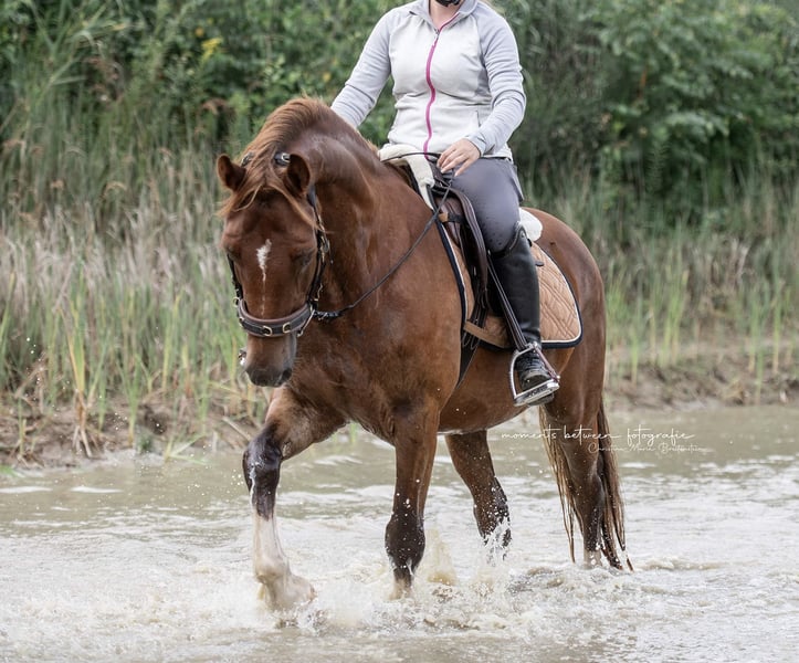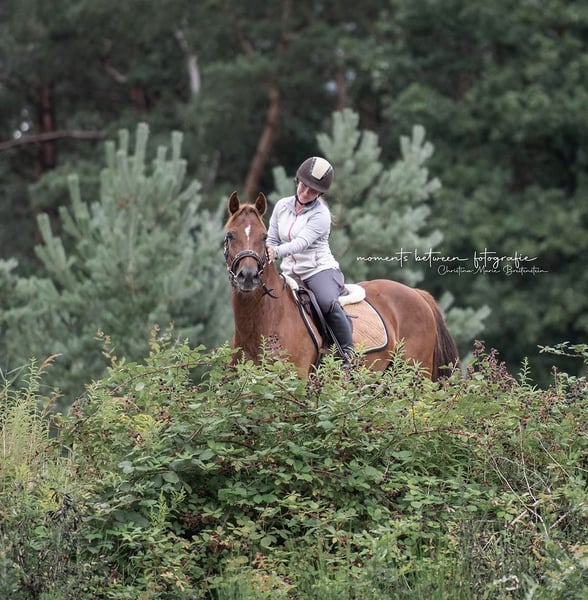 Notre magnifique hongre Welsh D recherche un nouveau cadre de vie – de préférence auprès d’un enfant, d’un adolescent ou d’une personne adulte de petite taille, afin de continuer à l’accompagner en toute sécurité dans le manège comme en extérieur. Il est fiable sur le niveau A, mais montre également à la maison et en cours des leçons de L (école de dressage) (tours d’épaule, galop extérieur, changements de pied simples, etc.). Plusieurs enfants ont pu apprendre à monter grâce à lui et obtenir leur brevet d’équitation avec succès – toujours calme, fin dans la contact, motivé dans le travail. En compétition, il a déjà été présenté en dressage E et A, ainsi que lors d’épreuves de dressage et de saut d’obstacles pour enfants. Mais les adultes prennent également plaisir à monter dessus. En extérieur, il se montre sage aussi bien seul qu’en groupe, connaît la circulation routière, les chiens, les tracteurs, etc. – un vrai tout-terrain avec du cœur et de l’intelligence. Il passe aussi dans l’eau. De plus, il connaît les bases du travail à pied. Nous recherchons : Un foyer aimant, de préférence en propriété privée favorisant son développement, idéal pour un enfant mais également adapté à des cavaliers adultes passionnés. Un box ou un paddock avec pâturage régulier est souhaité – il connaît les deux. Un résultat radiologique fortuit a été constaté. Sur le plan clinique, il est cependant totalement sain à ce jour – il se déplace de manière claire, ne présente aucune restriction et supporte pleinement l’entraînement quotidien et le travail en extérieur. Ce résultat n’a jusqu’à présent eu aucune incidence sur son utilisation. ℹ️ Informations importantes : • Vente privée, sans garantie. • Pour le test de monte, nous facturons 30 €, qui seront bien entendu déduits en cas d’achat.