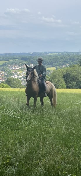 Bendur ist ein echter Hingucker und eigentlich sollte er in unserer Familie bleiben. Das Schicksal hat aber leider anders entschieden. Nun möchte ich aufgrund verschiedener Gründe, die ich im persönlichen Gespräch erörtern würde , ein neues Zuhause für den schönen Kerl finden . Wichtig ist mir , das er ein Zuhause bekommt , wo er geliebt und verstanden wird . Er ist ein echter Charakter Kopf und fragt regelmäßig ob die Regeln noch gelten . Dabei ist nicht bösartig, aber versucht zu dominieren. Mit regelmäßigen Training ist er gut zu Händeln und er liebt die Arbeit mit dem Menschen . Das ist in den ersten Jahren seines Lebens leider zu kurz gekommen. Er musste in jungen Jahren Hengstleistungsprüfung gehen . Das hat ihm leider mehr geschadet als geholfen. Er hatte keine solide Grundausbildung genossen und sich anfangs auf dem Platz komplett verweigert.Mit Bodenarbeit und Geduld hat sich Bendur aber toll weiterentwickelt . Ich möchte ihn jedoch nicht an ambitionierte Turnierreiter verkaufen. Er hat die Anlagen definitiv, aber das wollte ich ihm nicht antun . Er hat wahnsinnig tolle Gänge , ist im Gelände ein Traum , sehr rittig und gut zu Händeln. Er ist verkehrssicher , trittsicher und mutig. Er lässt sich toll sitzen und auch in unvorhersehbaren Situationen gut führen. Er lebt zusammen mit meiner Stute bei uns am Haus und genießt ein freies Leben ohne Gitter . Das hätte ich auch gerne wieder für ihn. Da er jedoch erst mit 8 Jahren gelegt wurde, wäre eine reine Wallach Gruppe wahrscheinlich das beste . Reine Stallhaltung möchte ich ihm nicht zumuten. Abends steht er in der Box mit Auslauf . Probe reiten kann bei Interesse jederzeit vereinbart werden . Er wird nur an privat Leute verkauft, kein Händler oder Schulbertrieb. Es ist auch kein Not Verkauf , wir haben Zeit und möchten das bestmögliche Zuhause für Bendur .