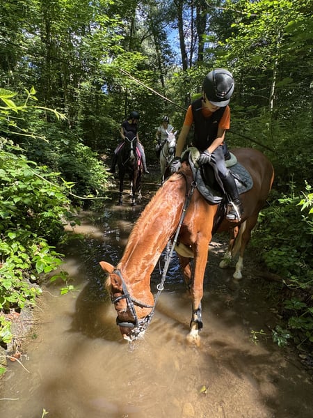 C'est avec le cœur lourd que nous devons confier notre magnifique cheval d'enseignement, Palermo. Il a appris énormément à notre fils au cours des dernières années et a toujours été un compagnon fidèle. De cavalier débutant (7 ans), il l’a accompagné du travail à la longe jusqu’à devenir un petit cavalier confiant. Palermo est un véritable trésor. Travail à pied, manipulation, chargement, licol et cavalier sans selle, tout cela ne pose aucun problème. Même en hiver, nous n’avons jamais eu besoin de le longeur. Lorsqu’un autre cheval démarre, il reste calme et détendu. On peut vraiment compter sur lui. Le poney idéal pour apprendre à monter. En lui, on trouve non seulement un compagnon fiable, mais aussi un meilleur ami. Notre fils a participé avec lui à plusieurs stages et examens d’équitation. Ils ont déjà tout fait ensemble, du dressage aux cours de saut d’obstacles et de barres au sol. Palermo a couru en compétition en attelage à l’international. Nous pouvons donc aussi l’imaginer comme un poney de trait pour enfants, même si nous n’avons aucune expérience dans ce domaine. La double longe et le travail aux longues rênes sont parmi ses grandes forces. Une autre de ses qualités est son aptitude au dressage. Il saute également un petit parcours à la maison, même avec un cavalier peu expérimenté. En revanche, lors d’un concours de saut, il lui faut un cavalier plus expérimenté pour lui assurer la sécurité nécessaire. Nous recherchons pour Palermo un nouveau partenaire de confiance et le meilleur nouveau foyer possible…