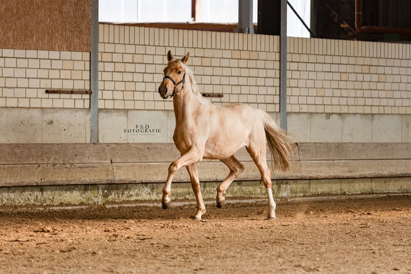 Ein echter Hingucker mit Zukunft – Palomino Nachwuchstalent ! Manchmal fällt es besonders schwer… und genau so ein Pferd ist dieser 2-jährige Youngster. Ein absolut typvolles Nachwuchspferd in besonderer Farbe (Palomino) – mit ganz viel Ausstrahlung und noch mehr Potenzial und eine Abstammung, die begeistert: Qaside MD x Sir Heinrich x Londonderry x Weltmeyer, besser lässt sich modernes Dressurblut kaum kombinieren. Er bringt alles mit, was man sich für die Zukunft wünscht; tolle Bewegungsqualität, modernes, sportliches Modell und er ist klar im Kopf und absolut menschenbezogen. Typisch für die Qaside MD-Nachkommen zeigt er sich super lieb, freundlich und unkompliziert im Umgang. Warum wir ihn abgeben? Für unsere Hengststation ist er als zukünftiger Deckhengst nicht vorgesehen, da wir sein Vater, Großvater sowie seinen Onkel bereits selbst auf Station haben. Umso mehr wünschen wir uns für ihn einen Platz, an dem sein besonderes Gesamtpaket erkannt und gefördert wird. ❤️