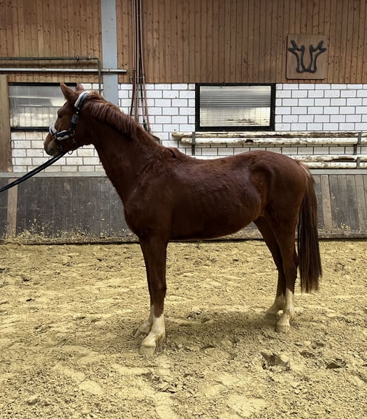 Brav im Umgang, kein beißen, kein treten. Regelmäßig entwurmt und ausgeschnitten. Bereits anlongiert und auch da sehr vorbildlich.