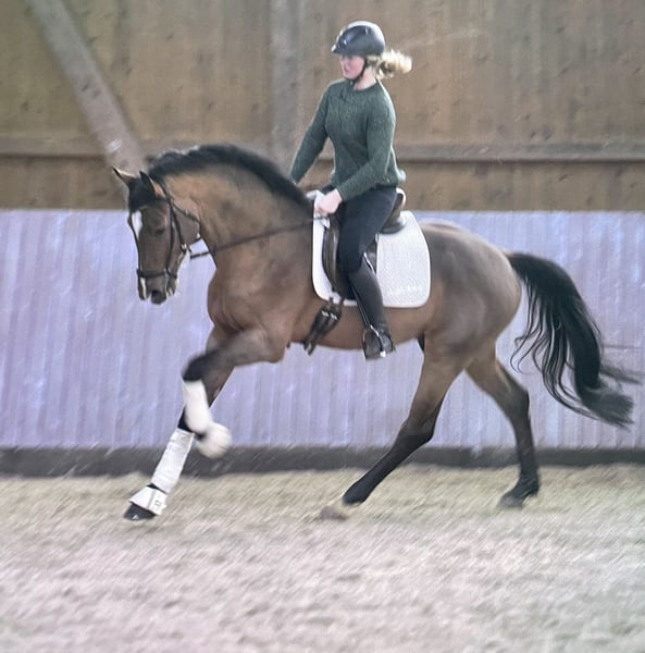 Cocolando is an impressive horse. With his beauty, he attracts all eyes, and his gallop captivates every spectator. He has an impeccable character, is not stallion-like at all, and is very rideable. His resume speaks for itself: At 2.5 years old, he was approved at the main licensing. At 3.5 years old, he completed the HLP test. At 4 years old, he won the Springpferde A class. At 5 years old, he won the Springpferde M class and was well placed at the Bundeschampionat in both qualification tests with scores of 8.3 and 8.4. Subsequently, he won the international young horse tour in Valkenswaard over 1.25 m. At 6 years old, he was placed in 1.30 m show jumping, won the Springpferde M class with a score of 9.0, and was again placed at the Bundeschampionat in both final qualification tests with scores of 8.3 and 8.6. Videos can be viewed abundantly online.