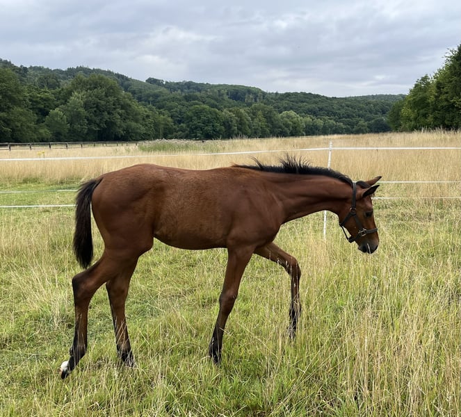 Großrahmiges, bildhübsches Hengstfohlen von Consantos (Conthargos / Zavall / Chin Chin) aus Leistungsstute Springen, St.Pr. St. Chiara WH. Chiara WH war Seriensiegerin in Springen M* und M** und S-platziert. Gerne an Aufzüchter oder fördernde Springreiter abzugeben.