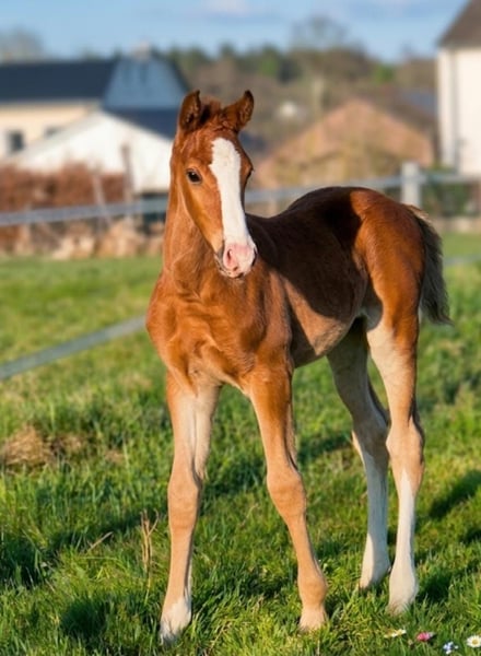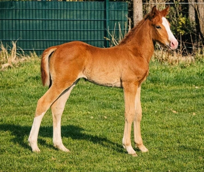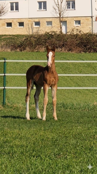 Edel gezogenes Hengstfohlen von Zinedine – aus Mutter mit zwei gekörten Söhnen Geboren: 14. Februar 2026 Hengstfohlen Vater: Zinedine Mutter Country Lady (Conceicao x Pilot).Leistungsstarke Zuchtstute, bereits zwei gekörte Hengste gestellt Farbe: Fuchs mit markanter Blesse Standort: Borchen (NRW) PLZ 33178 Preis: 10.000 inklusive MwSt Dieses außergewöhnlich typvolle Hengstfohlen überzeugt durch seine moderne, sportliche Linie und seine hervorragende genetische Absicherung. Der Vater Zinedine steht für Vermögen, Rittigkeit und Qualität. Die Mutterlinie ist besonders wertvoll: Zwei gekörte Hengste aus derselben Stute sprechen für Vererbungssicherheit und Zuchtpotenzial. Charakter & Auftreten - sehr menschenbezogen und freundlich - neugierig, klar im Kopf und unkompliziert - zeigt bereits schöne Bewegungen und gute Balance Besichtigung Besichtigung nach Absprache jederzeit möglich. Transport kann organisiert werden. https://www.instagram.com/pferdezucht_weritz?igsh=cHJ6anc3NHQ2aDlx&utm_source=ig_contact_invite https://www.instagram.com/reel/DVVQWfEiO17/?igsh=a2c1OHI4ZGNncmRt
