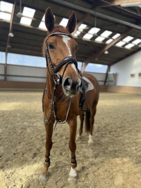 Bella ist eine 9-jährige Stute von Black Rock H x Caruso. Sie konnte sich in mehreren M-Springen platzieren, darunter auch M**. Sie will immer über jeden Sprung drüber und ist dabei sehr vorsichtig und bedacht, dass alles liegenbleibt. Bella ist kein Anfängerpferd und benötigt einen Reiter, der ihr klare Anweisungen geben und sie jederzeit gänzlich einrahmen kann. Man kann mit ihr jederzeit auf Turnier starten, sie ist da sehr routiniert und erfahren. Sie wurde regelmäßig geimpft, chiropraktisch und zahnärztlich behandelt. Außerdem ist sie schmiede- und verladefromm. Wir wünschen uns für sie ein 5-Sterne-Zuhause, wo sie im Mittelpunkt steht und geliebt wird. Wir geben sie nur sehr schweren Herzens her, da wir ihr aufgrund meines sehr intensiven Studiums sportlich nicht gerecht werden können aber Bella einfach eine Sportlerin mit Herz und Seele ist, die das auch ausleben möchte. AKU kann gerne vorher gemacht werden. Für weitere Fragen stehen wir gerne zur Verfügung.
