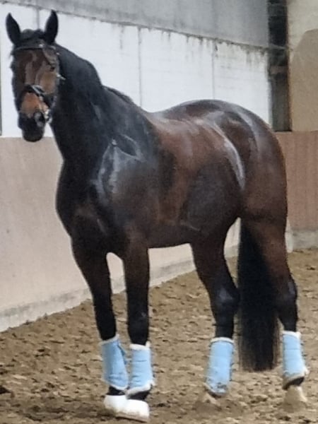 With a heavy heart, I am parting ways with Saphira due to personal reasons, as I need to undergo surgery and cannot provide her with the training she needs. She is not an easy horse, but if you have Saphira on your side, she is a wonderful mare. Saphira is 10 years old, by Sandro Hit, and measures 1.82 meters at the withers. She might also be of interest to breeders, as she has not yet had a foal. When she trusts her handler, she is very rideable. Therefore, I am looking for an experienced rider for Saphira, someone patient and empathetic. Currently, she is only lightly ridden (though lunged regularly), and her dressage level is good for an A-niveau, but with proper training, there is definitely room for further development. I have not ridden her myself, but she shows great enthusiasm for pole work. I wish for Saphira to find a loving home where she is worked with regularly and consistently, so she can build trust with her new person. She has been ridden both in the indoor arena and on outdoor dressage rings, and has also been out on trails with another horse. For more information, I am available by phone. You are welcome to meet Saphira in person. I can also send videos upon request. There is a veterinary report indicating that, with good, intensive training, she remains rideable. She has mild osteoarthritis in the cervical spine between the sixth and seventh vertebrae. She has always been healthy, never lamed, and I can send pictures, including images of her back with no findings. Please contact me at 01703081241.