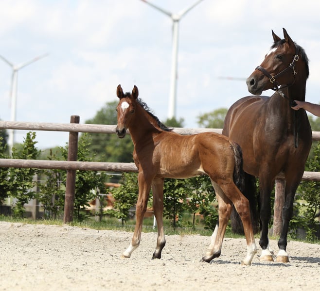 Zum Verkauf steht unsere liebenswerte und absolut unkomplizierte Zuchtstute, geboren 2014, mit einem Stockmaß von ca. 1,67 m. Die Stute überzeugt nicht nur durch ihr angenehmes Wesen, sondern vor allem auch züchterisch: Sie vererbt einen besonders guten Schritt und hat bereits zwei bildschöne, korrekte und bewegungsstarke Fohlen zur Welt gebracht. Beide Abfohlungen verliefen völlig problemlos, sie zeigte sich stets als sehr fürsorgliche Mutterstute mit viel Milch. Sie wurde 2025 nicht gedeckt und kann somit zeitnah in einer der nächsten Rossen besamt werden. In der Vergangenheit ist sie immer beim ersten Versuch tragend geworden. Im täglichen Umgang ist sie ein absoluter Schatz: nicht zickig, sehr brav, unkompliziert und lieb zu Kindern. Sie ist schmiede- und verladefromm, kennt Boxen- wie auch Weidehaltung und ist sehr verträglich mit Artgenossen. Bedingt kann sie auch als Freizeitpferd oder Beistellpferd genutzt werden. Die Stute ist im Stutbuch I eingetragen, regelmäßig entwurmt, geimpft und wurde stets liebevoll gepflegt. Bei ernsthaftem Interesse freuen wir uns über eine Kontaktaufnahme und beantworten weitere Fragen gern. Platz vor Preis.