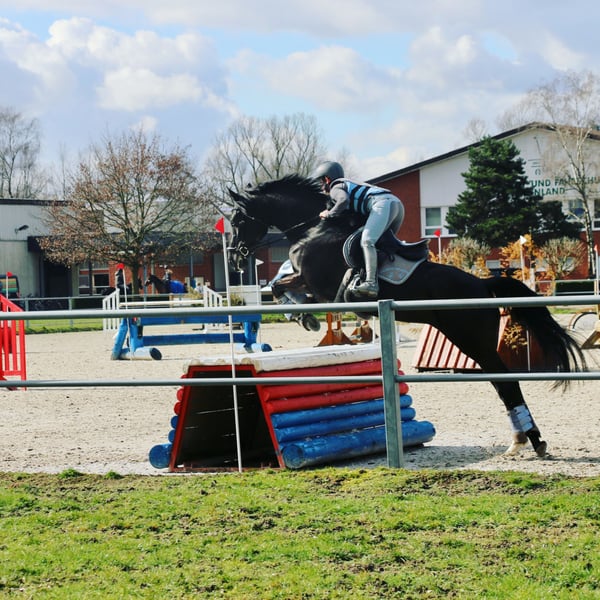 Zum Verkauf steht meine 12-jährige, 1,70 m große Rappstute, die seit Fohlen an in meinem Besitz ist. Auch ihre Mutter steht noch bei uns im Stall. Ausbildung & Erfolge: • 6-jährig halbe Turniersaison gelaufen, fast überall platziert • A-Dressur gewonnen, Dressurpferde A platziert, Eignungsprüfung platziert • Diverse Geländelehrgänge absolviert • Seit Corona hauptsächlich nur Freizeitbereich unterwegs Charakter & Eignung: • Absolut zuverlässig im Gelände und im Umgang mit Kindern • Meine 7-jährige Tochter holt sie allein von der Wiese, putzt, sattelt und reitet sie selbstständig im Schritt und Trab • Lieb und gelassen beim Reiten im Freizeitbereich • Unter fordernder Arbeit in höheren Gangarten kann sie hektisch werden, hier ist ein geschmeidig sitzender Reiter gefragt • Offenstallhaltung gewohnt und sollte auch so bleiben Gesundheit: • Robust und gesund, bis auf eine Hufgelenksentzündung 2024 (bei Weideauftrieb Tritt auf Stein) • Keine AKU oder Röntgenbilder vorhanden, können bei Bedarf vom Käufer beauftragt werden Sonstiges: • Verkauf aus beruflichen und finanziellen Gründen • Platz vor Preis – ich gebe sie nur als Familienmitglied ab • Anschauen jederzeit möglich, Probereiten 50 €, wird bei Kauf angerechnet Eine bildschöne Stute mit klarer Vergangenheit, besten Grundlagen und großem Herz. Ideal als verlässliches Freizeit- und Familienpferd mit zusätzlicher sportlicher Basis, Vollgeschwister sind bis M erfolgreich im Sport. Ihr komplettes Zubehör kann mit erworben werden.