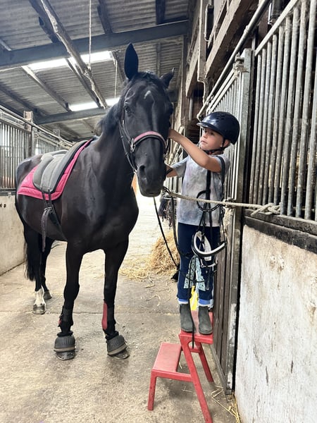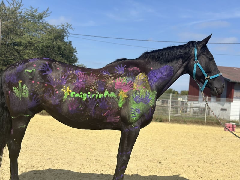 For sale is my 12-year-old, 1.70 m tall black mare, who has been in my possession since she was a foal. Her mother is also still at our stable. Training & Achievements: - Competed in half a tournament season at the age of 6, placed almost everywhere - Won A-level dressage, placed in dressage horse A, placed in suitability test - Completed various cross-country training courses - Mainly been used for leisure riding since the Corona pandemic Character & Suitability: - Absolutely reliable in the field and when handling children - My 7-year-old daughter can fetch her from the pasture alone, groom, saddle, and ride her independently at walk and trot - Sweet and calm when riding for leisure purposes - Can become hectic under demanding work in higher gaits; a smoothly seated rider is required here - Used to open stable housing and should remain so Health: - Robust and healthy, except for a hoof joint inflammation in 2024 (stepped on a stone during pasture turnout) - No vet check or X-rays available; can be commissioned by the buyer if needed Miscellaneous: - Sale due to professional and financial reasons - Home before price – I will only part with her as a family member - Viewing possible at any time, trial ride for €50, which will be credited upon purchase A beautiful mare with a clear history, excellent foundations, and a big heart. Ideal as a reliable leisure and family horse with an additional sporting background; full siblings have been successful in sports up to M level. Her complete equipment can be purchased as well.