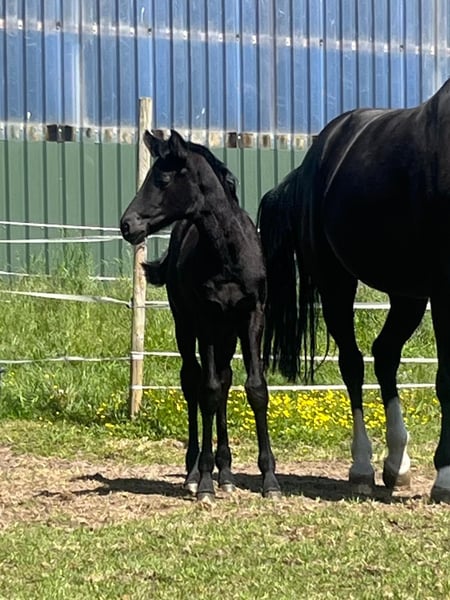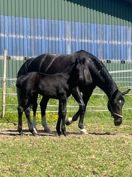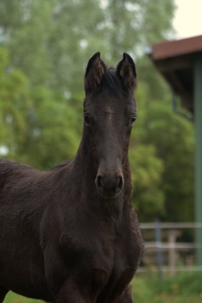 Diese wunderschöne tragende im Hengsttyp stehende Zuchtstute von Belissimo M x Sir Bedo aus dem Stamm Jucking, sucht wertschätzende Hände, die sich an dem gutem Fundament und der nachweislichen sehr guten Eigenleistung für ihre Zuchtlinie erfreuen. Die Stute ist 13 jährig und war selber bereits mehrfach in den schweren Klassen der Dressur plaziert. Sie hat leider eine Sportverletzung, weshalb sie sich aktuell in rekonvalenz Zeit befindet. Die Stute war ansonsten immer gesund. Sie hat dieses Jahr bei uns ihr erstes Fohlen gehabt und problemlos aufgenommen. Die Nachzucht ist von sehr guter Qualität und äußerst Typvoll. Die Nachzucht kann auch vor Ort besichtigt werden. Sie wurde dieses Jahr von Vivamor, einem absolut empfehlenswerten Youngster von Viva Gold belegt und ist sicher tragend für 2026. Die Stute besticht optisch und durch ihren Charakter, sie ist absolut Menschen bezogen und umgänglich. Sie ist jederzeit leicht zu händeln, in der Herde zeigt sie sich ranghoch und sucht sich ihre Sozialpartner aus.