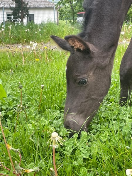 Zum Verkauf steht eine außergewöhnlich typ volle Jährlings Stute aus erstklassiger Dressurabstammung. Vater Vital Hit bringt moderne Bewegungsqualität, Elastizität und Präsenz mit. Mütterlicherseits sorgt Ehrenpreis für Rittigkeit, Arbeitsfreude und ein herausragendes Interieur. Im täglichen Umgang zeigt sie sich Kopf klar, freundlich und angenehm sensibel. Sie ist schmiedfromm kennt Führen, Putzen und zeigt sich stets brav und dem Menschen zugewandt– ein Nachwuchspferd, das von Beginn an Vertrauen schenkt. Ihr ausgeglichenes Wesen macht sie zudem besonders familienfreundlich. 🌟 Ihr Bewegungspotenzial Die Stute überzeugt mit natürlichen, taktsicheren Grundgangarten: Locker schwingender Rücken Elastischer, raumgreifender Trab Balancerter, aktiver Galopp Sie bringt alles mit, um später im Dressursport nachhaltig Freude zu bereiten. 🌿 Aufzucht & Haltung artgerechte Herdenhaltung sozial gut integriert gesund entwickelt, korrekt gebaut 🩺 Gesundheitsstatus regelmäßig entwurmt vollständig geimpft (inkl. Grundimmunisierung) altersentsprechend gepflegt ✨ Highlights auf einen Blick ⭐ Hochwertige Dressurabstammung (Vitalhit × Ehrenpreis) ⭐ Kopfklar & menschenbezogen ⭐ Familienfreundlich & unkompliziert ⭐ Schmiedfromm & sicher im Handling ⭐ Schöne Grundgangarten mit viel Potenzial ⭐ Gechipt, entwurmt, geimpft