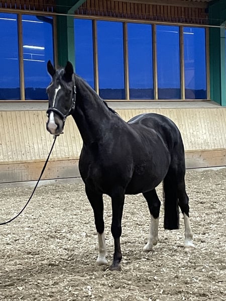 Unsere super fitte Donna Castania würden wir als Zuchstute oder Bodenarbeitspferd abgeben. Dressurmäßig über die Ausnahmehengste Damon Hill und Florestan gezogen, bringt sie ein sehr interessantes Pedigree mit und hat häufig ihre ganz besondere Dunkelfuchsfarbe weiter verfärbt. Sie ist selbst Großmutter zwei gekörter Hengste, einer davon (For Real) ist 2021 Bundeschampion der dreijährigen Hengste gewesen. Eine Halbschwester zu Donna Castania ist noch in unserem Besitz und hat bis elfjährig 15 S-Dressuren gewonnen und war Kurz-Grand Prix erfolgreich. Also ein sehr interessanter Stutenstamm. Donna Castania ist sehr feinfühlig und super angenehm zu führen. Wir verkaufen sie, da wir aus ihr bereits zwei hocherfolgreiche Stuten in der Zucht haben. Dreijährig hat sie eine sehr gute Stutenleistungsprüfung mit 8,3 abgelegt, wurde seitdem aber nicht mehr geritten und wird nicht als Reitpferd angeboten. Bei Fragen melden sie sich gerne telefonisch unter 0170 7741957.
