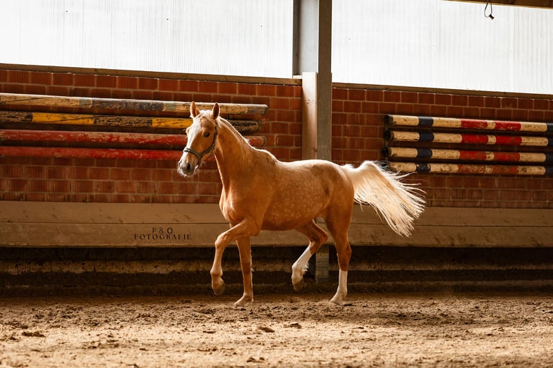Palomino Stute mit besonderer Qualität – eine echte Perle Diese 2-jährige Stute ist etwas ganz Besonderes. Mit ihrer besonderen Palominofarbe sowie viel Ausdruck, Bewegungsqualität und Ausstrahlung fällt sie sofort ins Auge. Die Abstammung Qandide x Fürst Piccolo x Medoc, eine Verbindung, die modernes Dressurblut mit Typ und Rittigkeit vereint. Doch nicht nur sie selbst überzeugt: Ihre Halbgeschwister (v. Qaside) wurden auf der Westfälischen Fohlenauktion hochpreisig verkauft (für 21.500 € und 18.000 €) Diese Stute bringt also nachweisbare Leistungsgenetik mit – und steht ihren Verwandten in nichts nach. ✨ vielversprechende Bewegungen ✨ wunderschöner, femininer Typ ✨ klar im Kopf und angenehm im Umgang Für uns eine echte Perle für den Sport oder die Zucht.