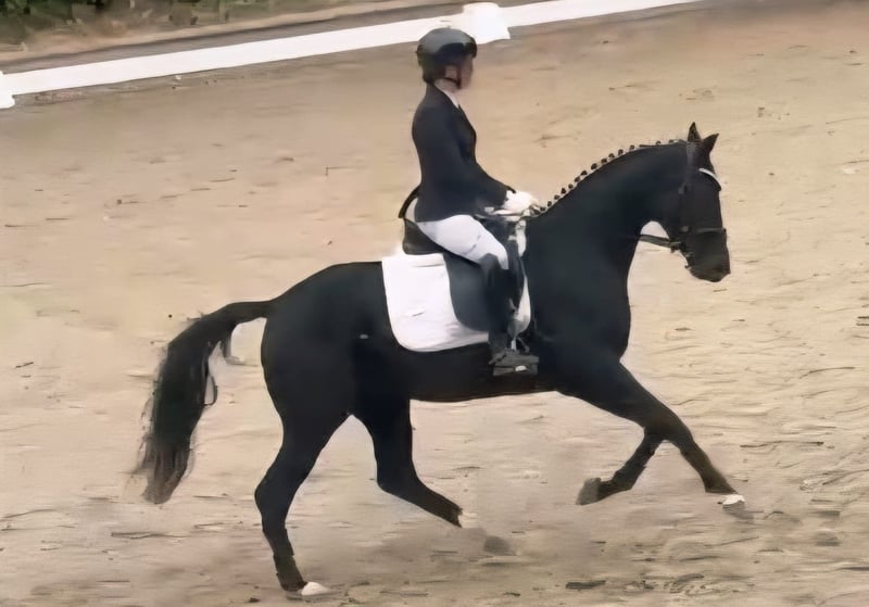 From our own breeding! Beautiful black mare for the big arena, Bea has three very good basic gaits, started under saddle, X-ray images are available.