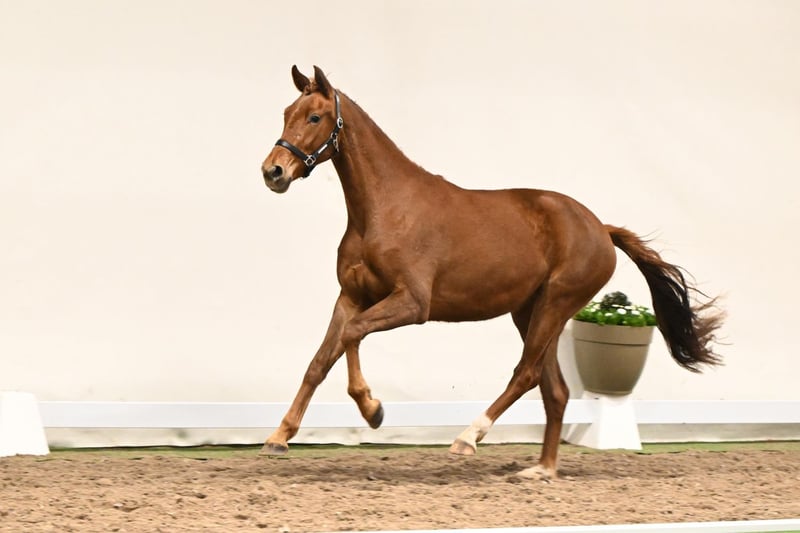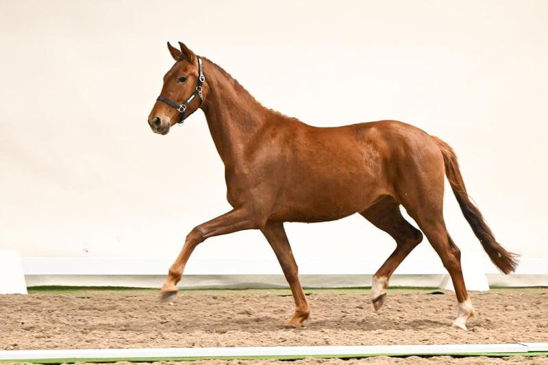 Vadina is a three-year-old, still raw mare who already clearly shows that she has inherited her father’s exceptional talent. Her harmoniously and correctly built body allows for powerful, expressive gaits, with a particularly impressive trot. She displays curiosity, a willing attitude, and a pleasant, people-oriented nature – a mare that immediately captures attention. Her pedigree is equally impressive: her sire, Vaderland, is an exceptional dressage stallion with top scores and international competition experience. In 2019, he completed the 14-day test in Adelheidsdorf with an outstanding dressage-focused score of 8.74, achieving the second-best dressage result, followed by a successful performance test in Verden in 2020. His canter and work ethic were both awarded 9.5, while his rideability earned him an incredible 9.75 from an independent rider. Under Dinja van Liere, he successfully competed up to CDI Prix St. Georges and Freestyle at the Dutch Masters, securing top placings right from the start. As a sire, Vaderland is equally impressive: his offspring have achieved top prices at auctions, excel on stallion licensing and competitions, and he was honored as VTV Stallion of the Year in 2024. The dam’s sire, Dimaggio, is internationally renowned for his outstanding dressage influence. He has produced numerous successful Grand Prix horses, Bundeschampions, and top stallions that shine at both national and international competitions. The dam’s grandsire, Stedinger, ranks among the top breeding stallions worldwide. He has sired over 40 licensed sons, 57 state premium mares, and offspring excelling in dressage, jumping, and eventing. Stedinger was crowned Champion at the Oldenburg Stallion Licensing and Reserve Champion of the Main Premium, completed his 70-day test with distinction, and competed successfully up to the highest dressage levels. Vadina combines everything a young sport horse should possess: harmonious gaits, a strong willingness to learn, remarkable talent, and an outstanding pedigree. A mare that impresses today and has the potential to shine in sport tomorrow.