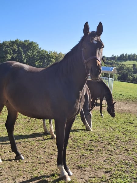 We are offering a talented and affectionate Westphalian mare for sale. Pedigree: Diamond Deluxe x Blickpunkt This young mare impresses not only with her attractive conformation but also with her charming temperament and eagerness to learn. She shows great potential in dressage and is ready to be further developed with an experienced rider. The mare is currently in our care for upbringing and can be visited at any time by appointment.