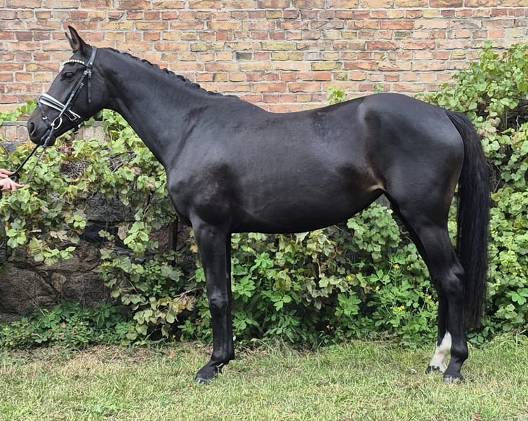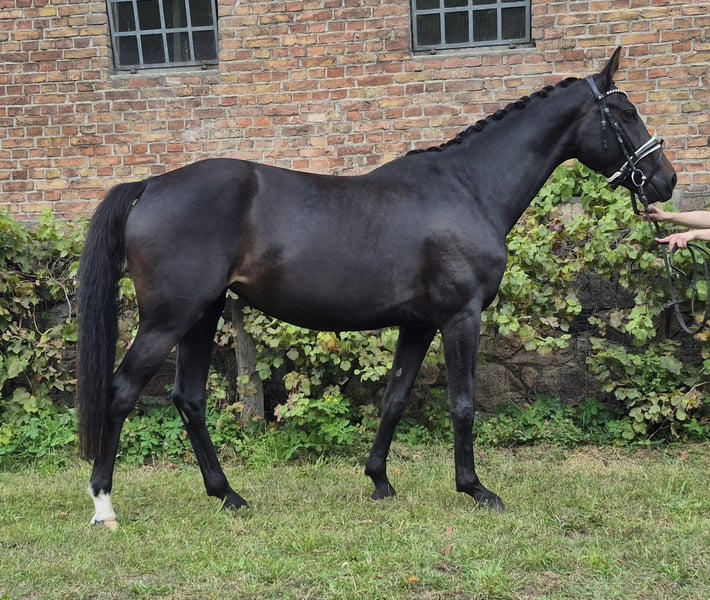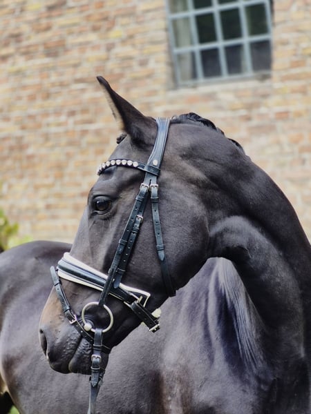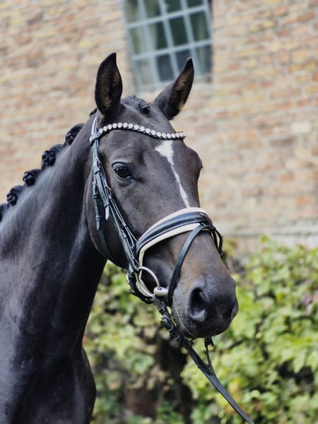 Zum Verkauf steht diese 4-jährige schicke schwarzbraune Stute von Baccardi’s Best x Dressage Royal x Damon Hill. Sie ist ca 1,62 groß, deckt hierbei aber gut ab (die Reiterin auf den Videos ist 168 groß). „Püppi“ wurde Anfang des Jahres angeritten und durfte danach den Sommer noch einmal auf der Weide genießen. Seit ein paar Wochen ist sie nun wieder im Training und bereit für neue Aufgaben. Unter dem Reiter zeigt sie sich stets gelehrig und unerschrocken, weshalb wir uns diese nette Stute sehr gut als Mädchen/Damenpferd vorstellen können. Dieses grundehrliche Pferd ist für alles zu haben. Ihre hervorragende Dressurabstammung lässt keine Wünsche offen - der Vater selbst ist S*** platziert. Sie hat sehr gute Grundgangarten, besonders hervorzuheben ist der Schritt. Sie macht außerdem einen guten Sprung und war bereits im Gelände unterwegs. Selbstverständlich ist die Stute schmiede- und verladefromm. Für weitere Fragen stehen wir gerne zur Verfügung.