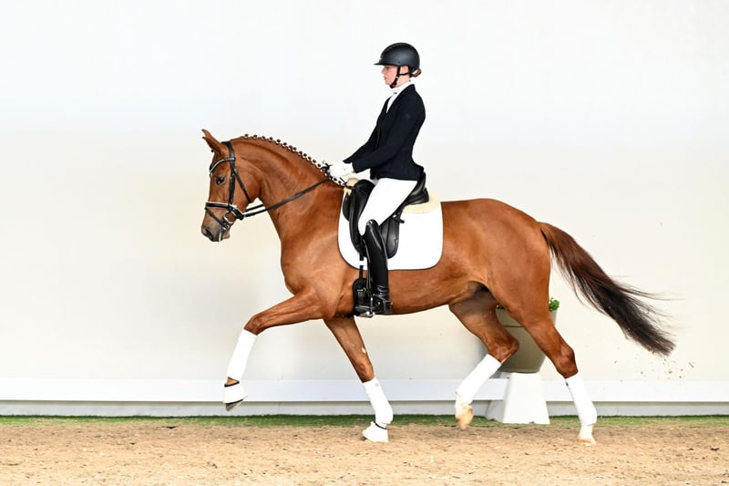 What an entrance: the four-year-old mare La Luna captivates from the very first moment and effortlessly draws every onlooker under her spell. With natural ease, an uphill tendency throughout, and remarkable elasticity, she impresses in all three basic gaits with outstanding quality. Her movement is defined by an active, powerful hind leg—the engine exactly where it should be. From this, she develops natural self-carriage and a convincing uphill balance that perfectly reflects modern dressage horse breeding at its finest. Under saddle, La Luna leaves nothing to be desired: sensitive to the aids, soft in the contact, and always in front of the leg, she offers her rider an exceptionally harmonious and light ride. A horse that knows how to present her rider to best advantage, consistently shining through quality and presence. Her pedigree is equally compelling: her sire La Vie stands for willingness to perform, exceptional movement potential, and outstanding character. Under Therese Nilshagen, he has proven himself successfully on the international stage. On the dam’s side, through Sandro Classic—Federal Champion of 2004—her lineage traces back to the influential Sandro Hit, providing a genetic foundation synonymous with modern type, expression, and sporting potential. La Luna is a horse that excites through movement, presence, and rideability alike—a highly attractive prospect for anyone seeking a modern young horse with that special something. Born to inspire.