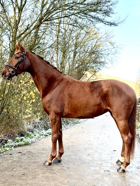 For sale: Broken-in Westphalian mare Vicky was born in 2021 and impresses with her friendly temperament and fearless nature. She has recently been backed and is familiar with being ridden in walk, trot, and canter. However, she is still in the early stages of training. If interested, I am happy to provide more information and arrange a viewing.