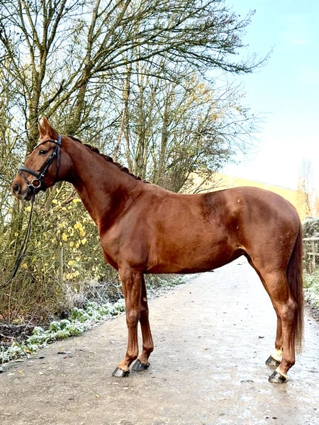Vicky, geboren 2021, überzeugt mit ihrem freundlichen Wesen und ihrer unerschrockenen, aufgeschlossenen Art. Sie stammt ab von Valverde x Donnerhall und vereint damit moderne Rittigkeit mit bewährter Dressurqualität im Pedigree. Im vergangenen Jahr wurde sie schonend angeritten und zeigt sich dabei sehr lernwillig und unkompliziert. Vicky kennt das Reiten in der Halle, auf dem Platz sowie im Gelände und zeigt sich hierbei souverän. Auch erste Sprünge unter dem Reiter hat sie bereits mit Übersicht und Freude absolviert. Bei Interesse stehe ich gerne für weitere Informationen oder zur Vereinbarung eines Besichtigungstermins zur Verfügung.