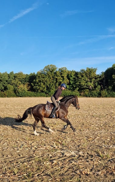 Se vende una talentosa yegua Westfalia, nacida en 2020. Esta elegante castaña tiene una alzada de 167 cm y destaca por su atractiva figura y su carácter amigable. La yegua muestra un gran potencial en saltos y ya ha adquirido sus primeras experiencias en esta disciplina. Está bien entrenada y se muestra dispuesta a aprender y cooperativa bajo la silla. Su temperamento equilibrado la hace adecuada tanto para jinetes experimentados como para jinetes principiantes ambiciosos. También está acostumbrada a salir a montar sola o en grupo. Está sana, vacunada regularmente y posee un pasaporte actualizado. Nació con nosotros, vive en box por la noche y durante el día está en el prado en grupo. El TÜV del criador está disponible y sin hallazgos especiales. Si está buscando una compañera talentosa y cariñosa para la equitación, ¡esta yegua Westfalia es justo lo que necesita! Si está interesado o tiene más preguntas, estaré encantado de recibir su mensaje.