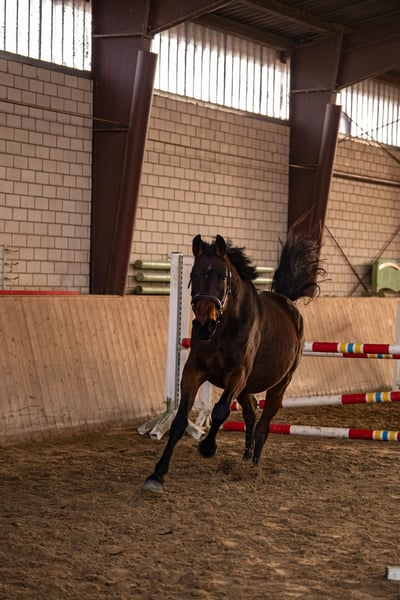 Zahrah è cresciuta nel nostro gruppo misto di età e ora è pronta a intraprendere la carriera da cavallo da dressage. Conosce il lavoro con il ferratore e il maneggio regolare, è già stata anellata e ha saltato i primi ostacoli liberi. Zahrah è molto socievole, coraggiosa in situazioni sconosciute e sempre rivolta alle persone. Durante il salto libero osserva attentamente il percorso e lo affronta con calma e cautela, con la giusta dose di prudenza. Ci farebbe piacere vederla un giorno nel bosco come cavallo da cross, ma possiamo anche immaginarla in futuro nel salto ostacoli o in altri sport e attività polivalenti che richiedono un partner lucido e concentrato. Per motivi di tempo, Zahrah può essere ceduta prima dell'addestramento per questo prezzo. Una volta montata, il prezzo sarà adeguato. Chi desidera vivere l’esperienza di conoscere Zahrah e il suo carattere fantastico e ha un serio interesse a prenderla come nuovo compagno, può contattarci tranquillamente tramite WhatsApp o messaggio.