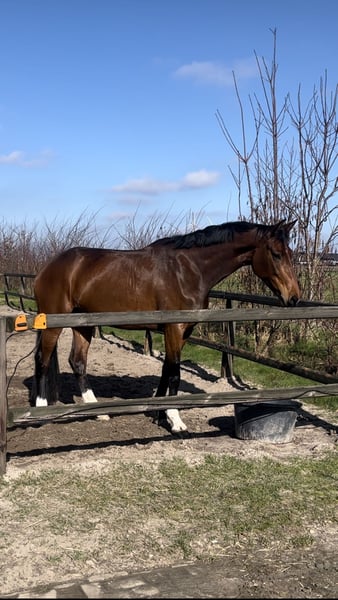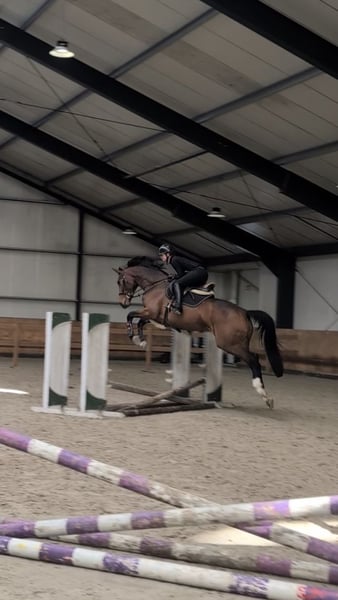 Vicky is an elegant, blood-type mare with expressive movement and a naturally balanced, adjustable canter that makes her especially suited for eventing. She has an excellent natural ability to lengthen her stride, come back when needed, and easily find the rhythm required on course - a quality that gives her great potential for the sport. Coming from a bloodline known for producing brave, willing and kind horses, she combines athletic quality with a lovely character. She was broken in in September and has been remarkably straightforward from the beginning. Vicky accepted her early training with ease and has always remained uncomplicated and well-behaved - no bucking, rearing or unnecessary tension. Under saddle, she shows plenty of power, scope and natural confidence, both in showjumping and cross-country. One of her standout qualities is her honesty: despite her young age and limited experience, she is exceptionally genuine to the fences and always wants to jump, even when presented from a less-than-perfect distance. She is brave, quick to understand new questions, and already demonstrates a natural feeling for flying changes. Vicky has already gone clear at her first training eventings and is now ready to start her first official eventing competitions. Because of her quality, blood, and athleticism, she is not a beginner’s horse, but she is absolutely a mare a rider can grow together with and develop step by step toward the higher levels of the sport. Although still young and green, Vicky learns quickly and gives her rider an excellent feeling for the future. She is an exciting mare with real potential for someone looking to produce a talented young horse for eventing sport.
