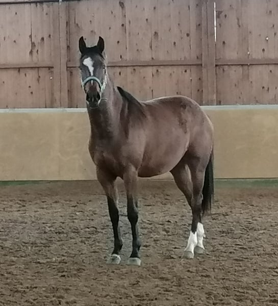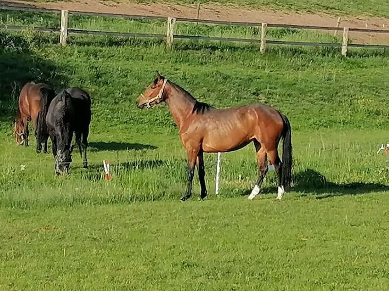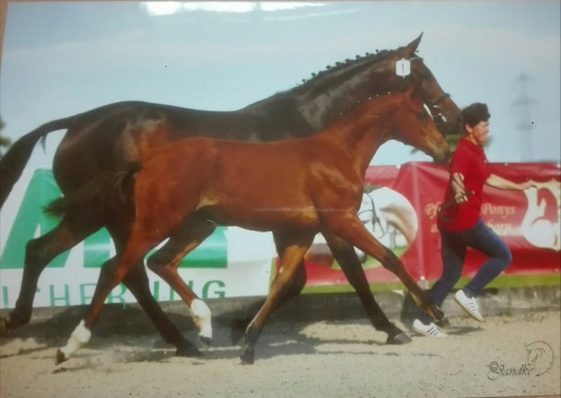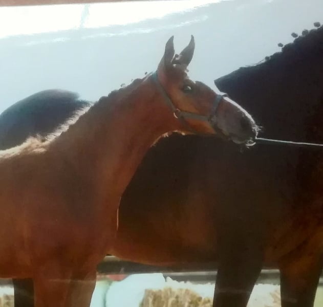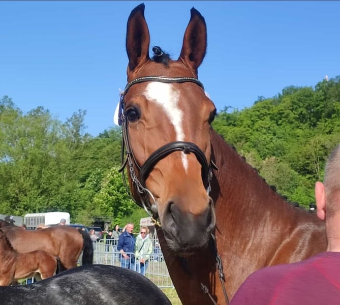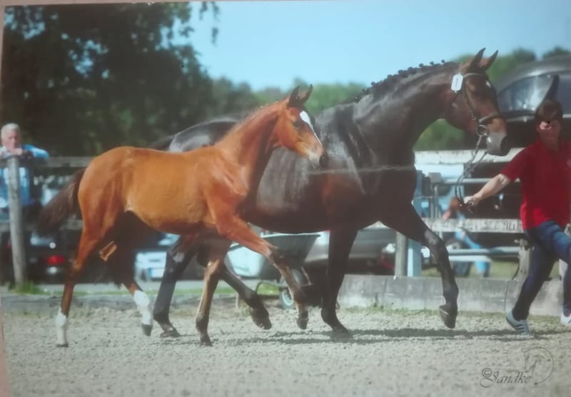 Harmonie ist eine sehr typvolle Stute . Sie hat ein sehr ausgeglichenes Temperament und unkompliziertes Wesen . Bei der Qualifikation für das LVM Fohlenchampionat erreichte sie 9x die 8,5 . Harmonies Mutterseite ist im Sport hoch erfolgreich bis zur Klasse S .DieGeschwiester der Mutter gehen bereits bis zur Klasse M. Sie sind in Luxemburg , Uwe Schwanz, Gut Neuenhof ,und Frederik Vekens . Ihr Vater High Motion war 3+4 jährig für das Bundeschampionat qualifiziert und gewann in Adelheitsdorf seine HLP. Harmonie wurde 3j kurz angeritten und dann nochmal auf die Weide gestellt. 4j wurde sie nochmals ca 6 Wochen geritten. Da ich aus gesundheitlichen Gründen nicht mehr reiten kann, wurde Harmonie nicht weiter ausgebildet und kann auch nicht vorgeritten werden. Sie war beim Anreiten absolut brav und unkompliziert Die gemachte Angaben sind unverbindliche Beschreibungen und stellen keine zugesicherten Eigenschaften dar. Der Verkäufer haftet nicht für Irrtümer, Eingabefehler und Datenübermittlungsfehler
