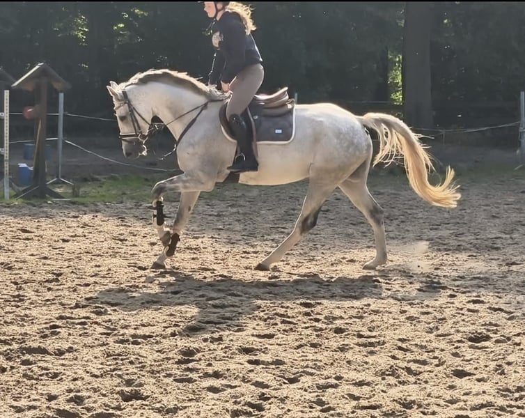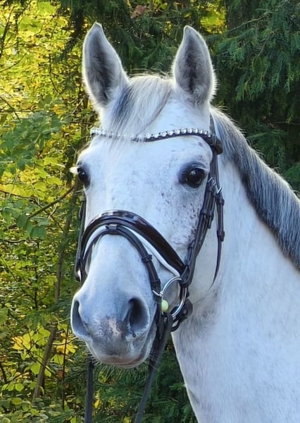 Beautiful, versatile, and exceptionally lovable dapple grey mare with good basic gaits and lots of jumping talent. Curly Sue has been ridden by a girl both on the arena and in the field and has already gained some first competition experience. She competed in an E and an A jumping class at a riding day and was placed right away. With further training, she will surely be successful in higher classes quickly. Her wonderful character makes her not only an excellent sport partner but also ensures that every day with her is fun. She is an absolute treasure both in handling and under saddle. Loading, bathing, farrier visits – all no problem. She would also be happy in a home where sport is not the top priority. What she needs most is a personal bond and engagement through her friendly nature. Curly is sensitive to aids and has a pleasant go. Her new rider should have some finesse and experience, even though she is generally easy to ride. Currently, she stays in a box at night and on a paddock during the day, but she is also familiar with full turnout. She gets along very well with other horses here. By the way, she has already had a foal and was only backed quite late, which gave her plenty of time to mature. Now she offers someone the opportunity to shape their future dream horse themselves. 7-year-old Westphalian mare, sired by Chacoon Blue, 1.64 m tall Clinical health clear Video: https://youtu.be/VtLgwymKEyQ?si=RJlm78Bji9GZzZVC https://youtu.be/_rHqji4G18Y?si=rqA1ayJ01VS3IaEq More horses can be found on my homepage MaresiLange.de Additional photos, videos, and insights into our daily horse life are available on Instagram: [maresi_lange]. Feel free to visit and get to know our four-legged friends a little better in advance. Please note: The horse’s description is based on subjective impressions and experiences and does not constitute a guarantee of properties or qualities. Trial riding is at your own risk. Sale is carried out on behalf of the owner. For viewing or trial riding, we reserve the right to charge a fee of 30 euros, which will be credited towards the purchase price if the horse is sold.