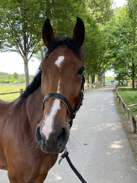 Viva la Vida est une jument Westfalienne de 7 ans qui a déjà pu se classer cette année dans des épreuves de saut jusqu'à la catégorie L. Elle est un véritable bijou en main, sous la selle et également sur le terrain de concours, se montrant toujours sous son meilleur jour. De plus, elle est une jument primée par l'Association Westfalienne, fille de Van Gogh et de la St.Pr. Moment of Glory par Montender - Champion Du Lys. À 4 ans, elle a eu un poulain par Emerald van‘t Ruytershof. Elle est également la sœur de Lenada par Lordanos (qualifiée BUCHA, 7 ans, 140 sous Josch Löhden). Elle est une partenaire idéale tant pour le cavalier ambitieux qui débute en compétition que pour le cavalier déjà avancé. Une rencontre et un essai sont bien sûr possibles, n'hésitez pas à nous contacter par téléphone.