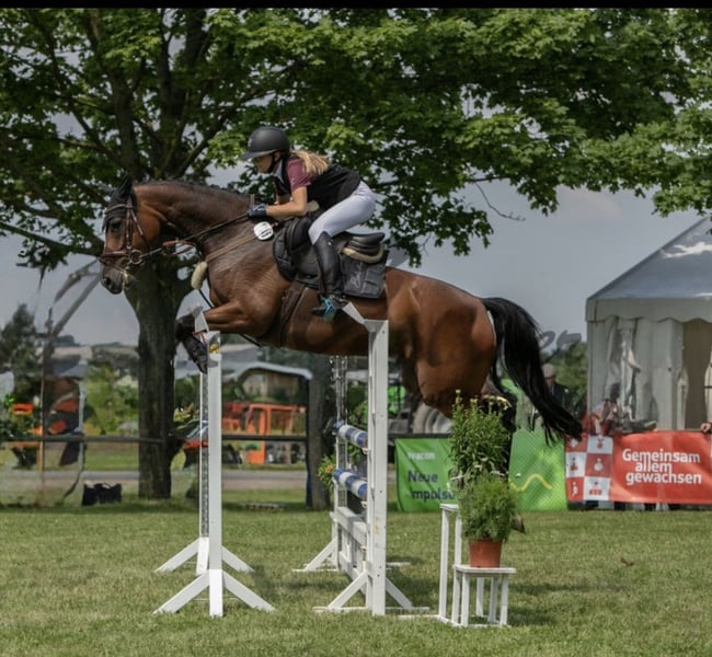 Aufgrund persönlicher Veränderungen und der Aufgabe des Reitsports haben wir uns schweren Herzens dazu entschlossen, unsere traumhaft schöne 8-jährige Stute in liebevolle, zuverlässige Hände abzugeben. Sie ist ca. 167 cm groß und seit vier Jahren Teil unserer Familie. Wir haben sie nach dem Umstieg vom Pony als 4-Jährige übernommen – seitdem hat sie uns nie enttäuscht und noch nie einen falschen Schritt gemacht!! Sie hat vom ersten Tag an bewiesen, was für ein besonderes Pferd sie ist: ehrlich, leistungsbereit, nervenstark und mit einem großen Herz für ihre Reiter. Ganz gleich, ob Turnier, Training oder ein entspannter Ausritt im Gelände – sie bleibt immer ruhig, entspannt und ist zu 100 % verlässlich. Sie macht alles mit, ob allein oder in der Gruppe, und gibt ihrem Reiter stets ein sicheres Gefühl. Auch in fremder Umgebung, auf dem Turnier oder bei Lehrgängen zeigt sie sich immer souverän und gelassen. Im Parcours kennt sie ihren Job: sie springt immer, ohne zu zögern oder zu glotzen, verzeiht Reiterfehler großzügig und bringt dabei stets Freude und Sicherheit mit. Sie ist aktuell bis zur Klasse L platziert und selbstverständlich im Training. In der Dressur wurde sie nicht weiter gefördert, wurde aber zweimal in einer A Dressur vorgestellt und meine Tochter hat ihr Reitabzeichen 4 mit ihr absolviert. Auch im täglichen Umgang ist sie absolut unkompliziert – brav, freundlich und ausgeglichen. Sie ist sowohl in der Haltung als auch beim Schmied, Verladen oder Tierarzt unproblematisch. Es liegen keinerlei gesundheitliche Einschränkungen vor – sie ist frei von Allergien, Husten oder sonstigen Krankheiten. Ein aktueller TÜV mit 21 Röntgenbildern ist vorhanden. Unsere Stute ist das perfekte Pferd für einen Ponyumsteiger oder einen Reiter, der sich ein verlässliches, leistungbereites Partnerpferd für den Springsport oder Freizeit wünscht. Sie vereint Herz, Talent und Charakter – und wir wünschen uns für sie jemanden, der genau das zu schätzen weiß. Videos und weitere Informationen senden wir gerne auf Anfrage. Bitte nur seriöse und ernstgemeinte Anfragen – leider steht sie nach einer enttäuschenden Erfahrung mit einem unzuverlässigen Käufer erneut zum Verkauf. Wir freuen uns darauf, den passenden Menschen für dieses besondere Pferd zu finden.