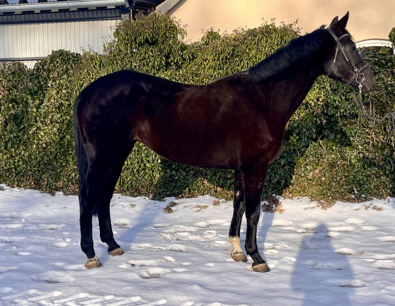 Galina - Elegant mare with potential! Galina is a very stylish black mare, born in 2018, approximately 16.1 hh. Not only is she very attractive, but she also has an excellent temperament. She has been ridden mainly for leisure and has had one foal; she is now back in work. She responds well to lunging, is impeccable in handling, and gets along well in a herd. Galina needs a gentle yet assertive rider. Once you win her heart, she becomes a wonderful partner. She is barefoot and dewormed. She is familiar with lunging, ground work, and training in the indoor arena and on the outdoor riding surface. Due to her foal, she is naturally a bit "green" in her training and now needs someone to further develop her potential. Galina has great potential, and there is much to achieve with her! Sire: Gustav v. Gambrinus Dam: v. Checkland Price: €5,950. She is located near Sonnefeld, 96242. Transportation can be arranged at the buyer's expense. Gloria is being sold due to reduction of stock.