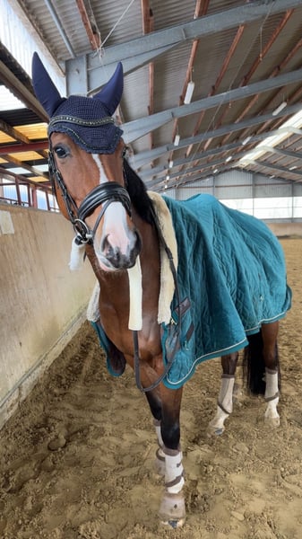 For sale is a stunning and light-footed chestnut mare by Allegro Sun out of a dam with Polytrauma, due to her retirement from show jumping. The nearly nine-year-old mare stands approximately 16.1 hh and impresses with her exceptionally friendly nature and her willingness to perform in the arena. Louisa has achieved placements in A* and A** classes. She is well-behaved in the terrain and is familiar with trailers, transporters, and trucks. She was recently vetted, including a back check, with no findings. Since she has been in my possession, she has never been ill, lame, or experienced any health issues. Currently, she is kept in box stalls with daily turnout on pasture or paddock. A fee of €30 will be charged for pre-ride/test riding, which will be credited towards the purchase price.