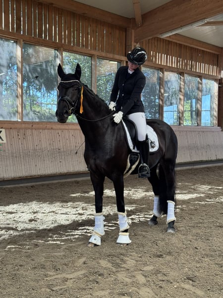 Bildhübsche Stute Sucht liebevollen Besitzer Fini ist 9 Jahre alt, seid November 2024 in unseren Besitz. Sie ist sehr sensibel, im Umgang super lieb und brav. Fini braucht einen erfahrenen Reiter der Gedult, Gefühl und Nervenstärke mit bringt. Sie ist Dressurpferde L siegreich und Dressurpferde M platziert. Stockmaß 1,66 m. Sie ist jedoch kein Gewichtsträger, wegen Größe und Statur max 70 kg. Sie ist absolut Turniertauglich weder schreckhaft noch guckig. Anhänger fahren kein problem Sie steht einfach ruhig. Sie ist mein Traumpferd habe Sie für meine Tochter gekauft, aber leider passen die 2 reiterlich nicht zusammen. September 2025 sind wir 1. Tunier mit Fini gegangen 1 Platz. Sie wird nur in beste Hände übergeben. Hatte mir überlegt Sie decken zu lassen, weil Sie einen absoluten Traum Charakter und klaren Kopf hat, trotzdem ändert sich nichts an der Situation. Bei Interesse melden für weitere Informationen. Tel: 0160/7878188