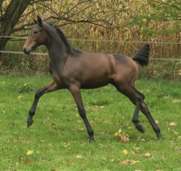 Wunderschönes Stutfohlen aus 04/25, groß gewachsen und super artig. Wächst im Herdenverband auf. Hat wunderbar Schwungvolle GGA mit guter Stabilität. Ganz klassisch in der Farbe, komplett dkl. Braun ohne Abzeichen. Kennt selbstverständlich das Fohlen ABC mit Halftern, leichtes Führen, Putzen, Hufschmied, Wurmkur. Vater Felissimo ist mit seinen 9 Jahren unter Anja Wilimzig, mittlerweile erfolgreich in Dressurprüfungen der Klasse S, St. Georg Spezial, unterwegs. Sein Vater Franziskus war eins der Erfolgspferde in der Dressur ( Grand Prix Spezial, S****, CHIO Aachen etc) mit Ingrid Klimke. Muttervater Cennin war 2018 einer der Top 50 Dressurpferde der Welt ( Platz 21) im WBFSH Ranking. Auch 2025 macht er weiter auf sich aufmerksam unter seiner Reiterin Dania Gschwind-Widmer(Taiwan). In Görlitz platzierten sie sich an 5ter Stelle in einer FEI Intermediaire I und Prix St. Georges. Desweiteren führt die Mutter wertvolles und vorallem sehr haltbares Blut über Biotop × Pit I × Pazifik. Wie führen eine kleine, sehr liebevolle Zucht wo wir dieses Jahr dieses tolle Stutfohlen anbieten möchten. Sie ist täglich am Menschen und somit sehr zutraulich und verschmust. Das Fohlen kann fast täglich persönlich angesehen werden. Ein Fohlentüv ist schon erstellt, ohne Mängel. Dieser kann natürlich jederzeit aktuell gemacht werden. ✨ Hinweis zum Preis: Der Preis ist fair und mit Bedacht gewählt – schließlich steckt viel Herzblut, Zeit und Liebe in der Aufzucht. ❤️ In der Anzeige wird er daher nicht weiter reduziert. Bei einem persönlichen Gespräch finden wir aber bestimmt eine Lösung, mit der beide Seiten zufrieden lächeln – und das Fohlen in die richtigen Hände kommt. 🐴