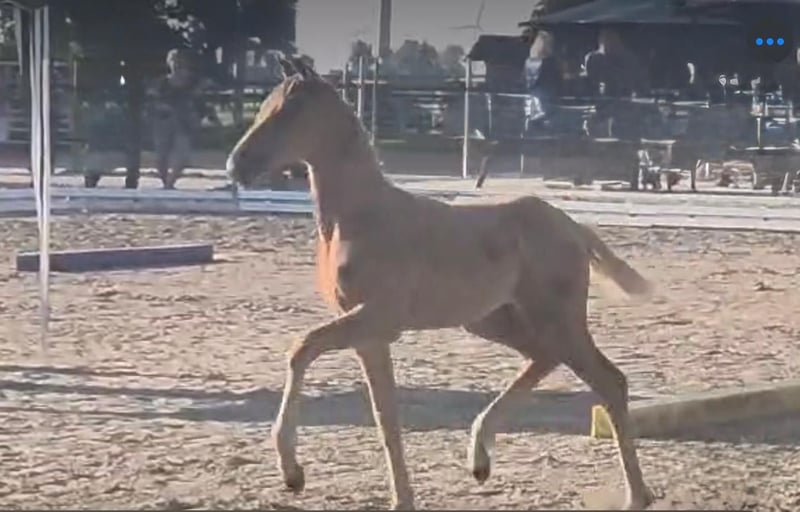 Hermosa potra palomino de gran tamaño, hija de Qaside MD x Damon Hill x Romantic Boy, en venta. Fue subcampeona en la exposición de potros en Hinte. Nacida el 30 de abril de 2025. ¡Solo en manos comprobadamente responsables! Ubicación: 26632 Ihlow