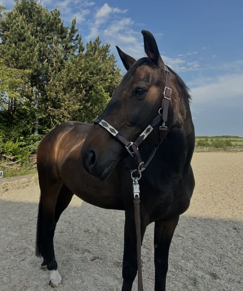 Es handelt sich um einen 11-jährigen Westfalen-Wallach mit charakterstarkem, dabei sehr liebem Wesen. Er ist freundlich, aufmerksam und menschenbezogen. Im täglichen Umgang zeigt er sich brav und kooperativ, kann jedoch in neuen oder ungewohnten Situationen schreckhaft reagieren. Wird er unsicher, kann er dabei auch schnell dickköpfig werden. Umso wichtiger sind mir ein ruhiger, souveräner Umgang sowie eine feste Bezugsperson, zu der er Vertrauen aufbauen kann. Reiterlich wurde er regelmäßig gearbeitet und ist mehrere Lehrgänge gelaufen. Leider ist er seit etwa einem Monat aufgrund von Headshaking nicht mehr reitbar. Aktuell steht daher die Gesunderhaltung und sein Wohlbefinden im Vordergrund. Zusätzlich leidet er leider an chronischer Dermatitis, weshalb eine konsequente und regelmäßige Pflege notwendig ist. Mit entsprechender Versorgung kommt er damit gut zurecht. Besonders positiv hervorzuheben ist seine Freude an der Bodenarbeit. Er lernt sehr gerne Neues, ist motiviert und zeigt dabei viel Spaß an der gemeinsamen Arbeit vom Boden aus. Auch bei der Handarbeit zeigt er Freunde. Gesucht wird ein liebevoller, verständnisvoller Platz bei erfahrenen Menschen, die ihm Zeit, Ruhe und Aufmerksamkeit schenken und seine gesundheitlichen Besonderheiten akzeptieren. Aufgrund seiner gesundheitlichen Situation kommt für ihn auch ein Platz als Beistellpferd gut infrage. Aktuell lebt er in einer Paddockbox mit täglichem Paddock- oder Weidegang. Wir würden ihn bei Bedarf auch zur Verfügung stellen, in diesem Fall mit vollständiger Kostenübernahme. Bei ernsthaftem Interesse freuen wir uns über eine Nachricht.