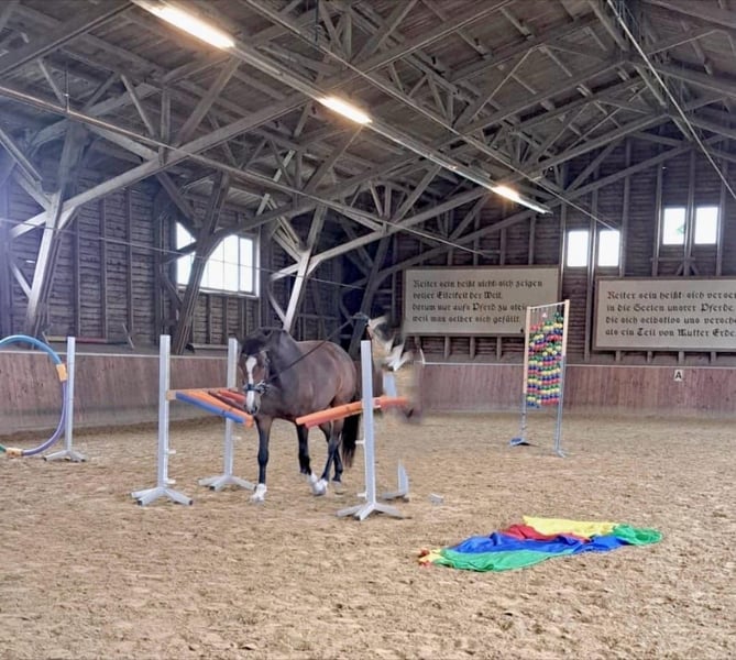 Con gran pesar, busco un nuevo hogar hermoso y cariñoso para mi caballo Westfaliano de 10 años y 1,83 m, "Dieter". Debido a una afección en la columna cervical, ya no puede ser montado y por ello se entrega como caballo de compañía. Sin embargo, dependiendo de su estado anímico, puede ser trabajado desde el suelo. En los últimos años, ha aprendido muchas cosas diferentes, entre ellas: - Trabajos de longe y trabajo en el suelo con cabezada - Trabajo a mano con brida - Entrenamiento de calma - Equikinetic - Paseos en terreno (solo con una persona de confianza o en grupo) - Inicio de trabajo en libertad Además, recibe tratamientos regulares con pads de equilibrio, Novafon y TENS. "Dieter" es un caballo honesto, amigable y tranquilo, que siempre muestra curiosidad y afecto. Necesita una persona experimentada en caballos que le dé tiempo para confiar en ella. Una vez que ha establecido esa confianza, va a la par con su humano en las buenas y en las malas. Conoce la vida en la granja con niños, perros y tractores, y suele mostrarse curioso y valiente. En la manada, ocupa un puesto alto y, lamentablemente, solo es compatible con caballos castrados. Camina sin herraduras y se le lleva al herrero cada seis semanas. Además, está vacunado regularmente contra tétanos, influenza y herpes, y recibe desparasitaciones periódicas. Sus dientes también son revisados con regularidad. Recibe tratamientos osteopáticos y fisioterapéuticos de forma continua. Actualmente, vive en un box paddock con acceso diario a la pista de manejo. Es imprescindible que tenga acceso diario a pasto o paddock en su nuevo hogar. Anteriormente, vivía en un establo activo, donde también se adaptaba bien. Busco para "Dieter" una persona sensible que lo ame hasta el final de sus días, que cuide de él según sus necesidades y le ofrezca un hogar con mucha libertad de movimiento. Lo ideal sería un lugar donde, dependiendo de su estado de ánimo, pueda ser trabajado fácilmente desde el suelo y, sobre todo, que lo ame muchísimo. ¡Prioridad al espacio antes que al precio! Si estás realmente interesado, no dudes en enviarme un mensaje. Con gusto te daré más detalles y hablaremos en una conversación personal sobre su estado y otras informaciones.