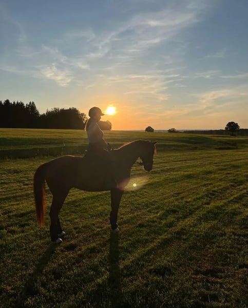 For sale is a 14-year-old gelding (approximately 165 cm tall). He is well-behaved under saddle, regularly shod, and good to load. In training, he shows himself to be very reliable: He is used in children's riding lessons on the lunge or free in walk and trot. He is always friendly and patient, even at children's birthday parties. In the field, he behaves well, whether led or under saddle. He can be easily led in the field by older children. He may occasionally buck in canter. Therefore, I see him more suited for experienced riders or as a great leisure horse for people with a bit more horse experience. It is very important to me that he finds a loving forever home and does not become a "trophy horse." He is a horse with heart, who appreciates a person that accepts him as he is and provides him with a nice home. For further inquiries, please feel free to contact me. Location: 82407