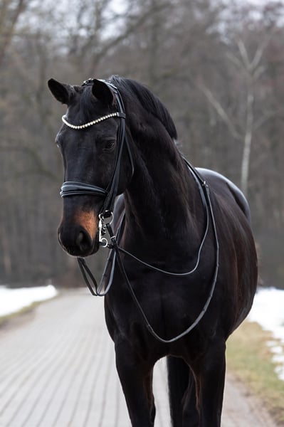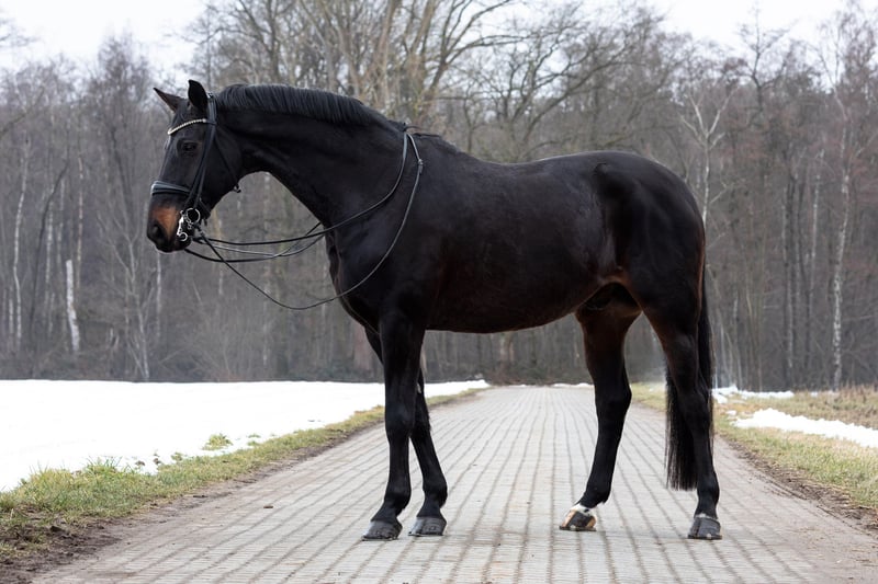 Fabio was in the Netherlands placed in M-level competitions. I, as an amateur rider, took over him in 2021. He was further trained for me to accept tense hands and an unsteady seat. He is very sensitive, which allows him to respond excellently to subtle aids. Due to health reasons, I have to sell him reluctantly. He has three very good basic gaits and a lively, elastic trot; he is an elegant horse. Fabio is gentle, attentive, affectionate, and very human-oriented. He seeks a close bond with his rider. Fabio is a good teacher for a young rider. FEI passport available. Health certificate from 2021 with X-ray images available.