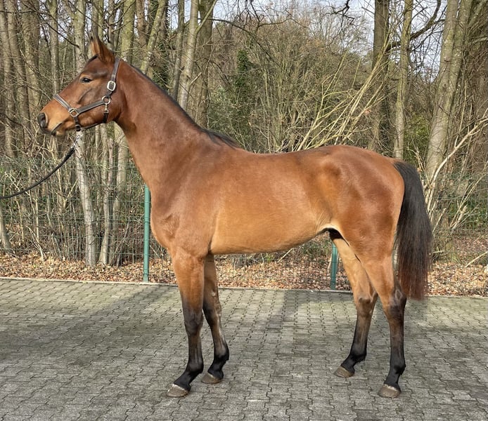 Schöner Brauner Wallach geboren 03/2023 mit drei besseren GGA ausgestattet, sowie einen tollen Körperbau. Stammt von Escolar x Cristallo I ab und ist derzeit 1,68 groß. Kommt direkt aus der Sommerweide und ist seit kurzem im Stall.