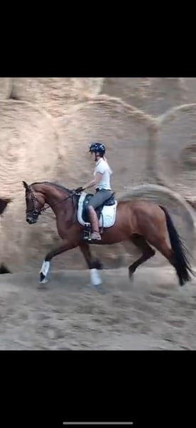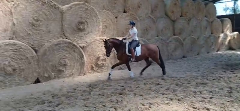 Zazou – 3-jähriger Wallach von Zuperman x Fürstenball Bei uns geboren und artgerecht aufgewachsen, beginnt Zazou nun behutsam mit seiner Ausbildung unter dem Sattel und zeigt sich dabei stets lernwillig, brav und angenehm im Umgang. Dieser großrahmige Youngster überzeugt mit drei überdurchschnittlichen Grundgangarten – besonders hervorzuheben ist sein raumgreifender, taktsicherer Schritt. Die dynamische Hinterhand und seine auffallend hohe Rittigkeit lassen auf eine vielversprechende Zukunft im Dressursport schließen. Zazou steht noch am Anfang seiner reiterlichen Laufbahn und eignet sich hervorragend für Reiter*innen, die sich ein talentiertes Nachwuchspferd mit Perspektive sichern möchten. Er ist: • Verladefromm • Schmiedefromm und regelmäßig dem Hufschmied vorgestellt • Regelmäßig entwurmt • Zahnkontrolle wurde durchgeführt Ein vielversprechender Nachwuchs für Sport oder gehobene Freizeit – aus bestem Hause und mit solider Grundausbildung.