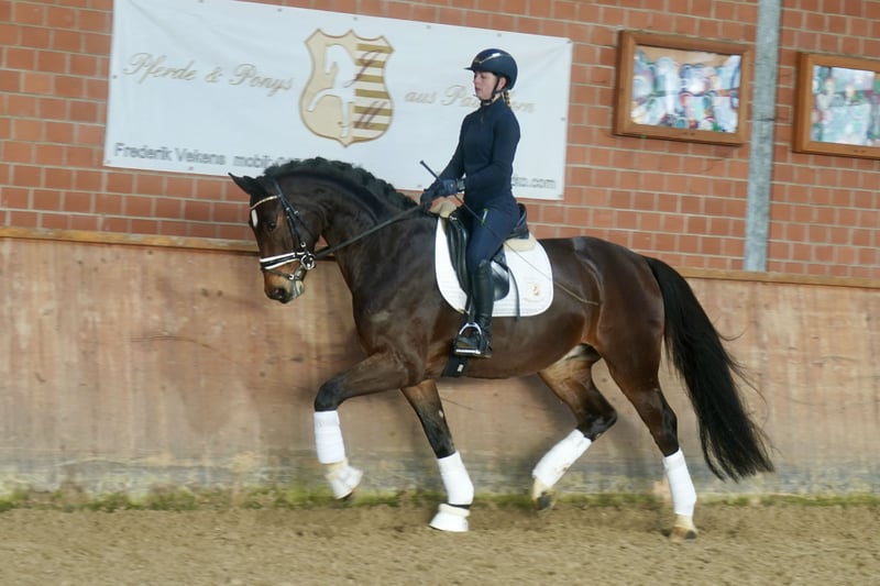 Verkaufe hochveranlagten Westfalen-Wallach, geb. 2022, mit beeindruckendem Stockmaß von 168 cm. Der braune Wallach ist ideal für den Dressursport geeignet und zeigt viel Talent sowie eine vielversprechende Grundausbildung. Er ist freundlich im Umgang und besitzt eine angenehme Charakteristik. Perfekt für ambitionierte Reiter, die einen jungen, vielseitigen Partner suchen. Er entspringt einem Holsteiner Mutterstamm, gespickt mit viel Springhenetik. Ablauf & Kraft machen diesen genmix ein Interessant. Bei Interesse stehe ich gerne für weitere Informationen und eine Besichtigung zur Verfügung.