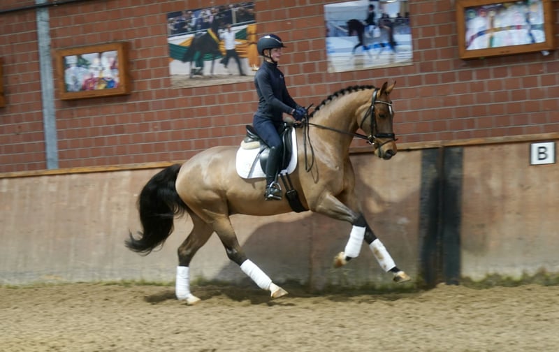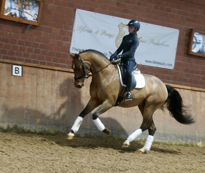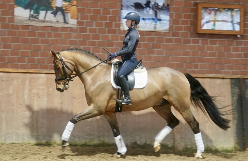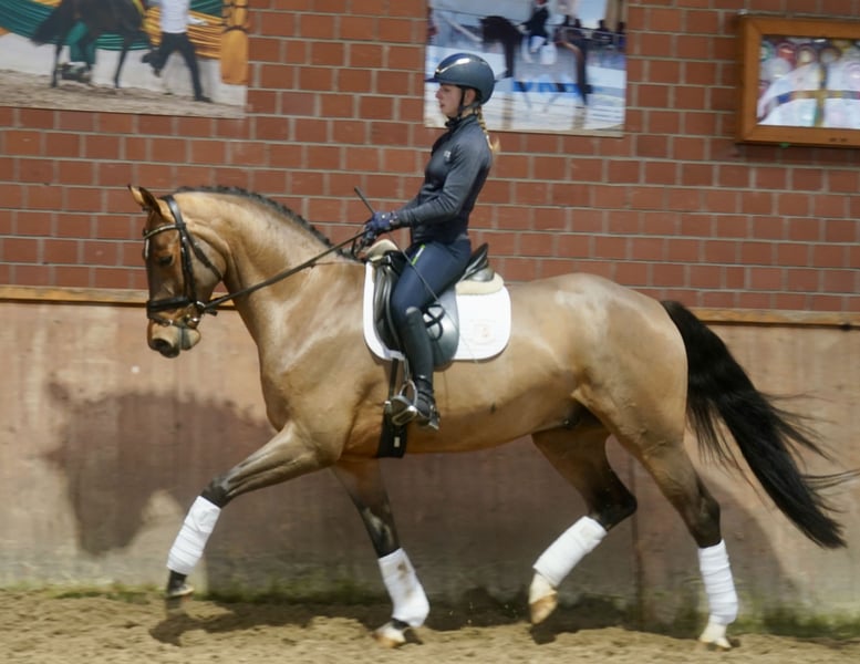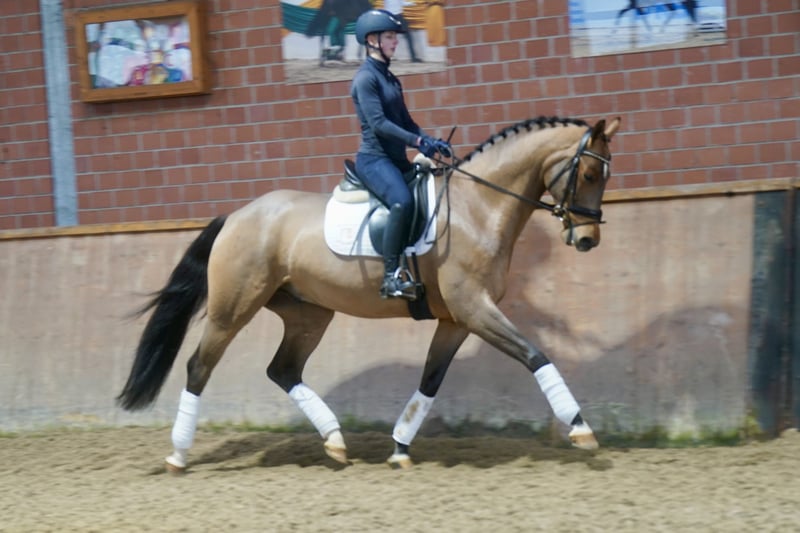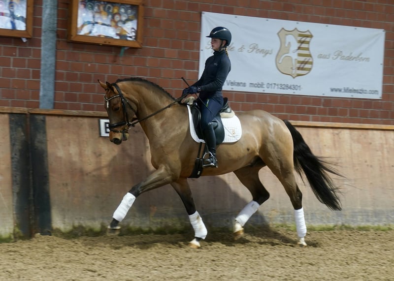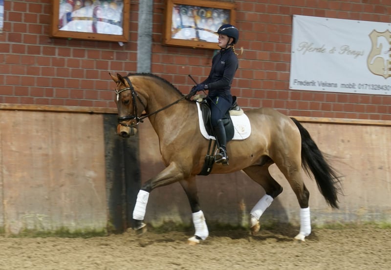 Verkaufe wunderschönen Westfalen-Wallach, geb. 2022. Das braune Pferd besticht durch sein elegantes Erscheinungsbild und sein angenehmes Temperament. Mit einem Stockmaß von 168 cm eignet er sich hervorragend für den Dressursport. Er ist gut abgeritten, sehr rittig, dazu lernwillig und zeigt viel Potenzial für den ambitionierten Reiter. Bei Interesse und weiteren Fragen stehe ich gerne zur Verfügung.
