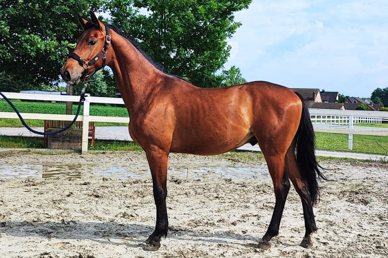 Chico is an extremely beautiful, athletic, long-legged foal, which inspires with a lot of elasticity. In terms of character, Chico presents himself incredibly cool and intelligent. He is very self-confident, easy to handle, sweet and people-oriented. The sire Coeur de Bella Donnas (born 2018) became the celebrated winner of the Westphalian Licensing League. He sparked goose bumps and pure enthusiasm during his performances in free jumping. Equipped with outstanding elasticity, maximum capacity and brilliant technology, Coeur de Bella Donna effortlessly masters even the highest dimensions. Particularly impressive is his natural overview and intelligence on the jump, which became particularly clear in the new licensing discipline of the Westphalian Licensing, the free jumping with only one jump. Breeding manager Thomas Münch concluded: "An athlete from head to sole with first-class jumping impressions. We go into raptures." The mother also combines jumping blood with a descent from Pontifex, Polydor, Acord II and Argentinus and was herself successful in sports. With Calle vom Kiez, a half-brother of Chico, has already been very successfully marketed as the top horse of the Youngster Auction of the 3-year-olds. PS: Video on request via Whatsapp